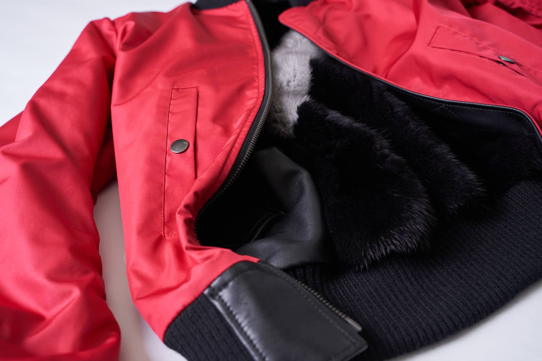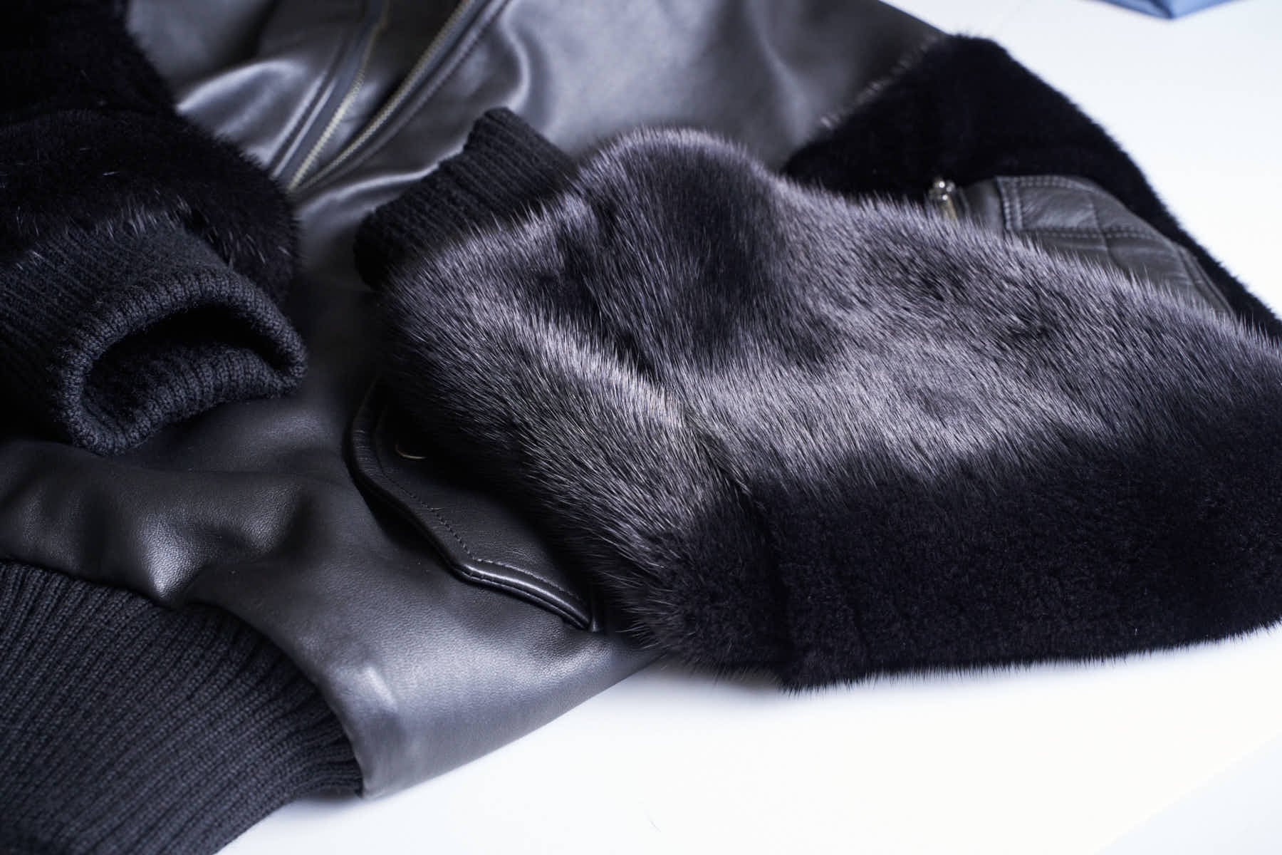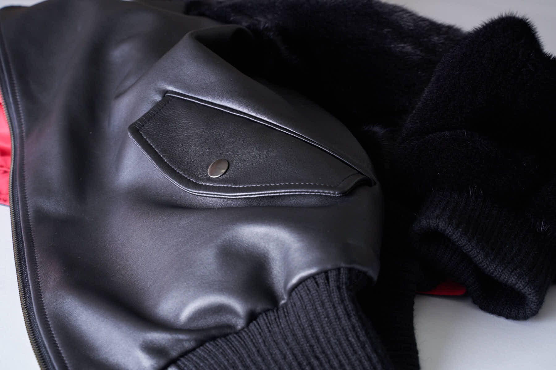 ミンクファーを使ったMA-1ジャケット。SHINGIのアイコンである「刀」を大胆にあしらったバックスタイルが特徴的。リバーシブルでも着用可能です。